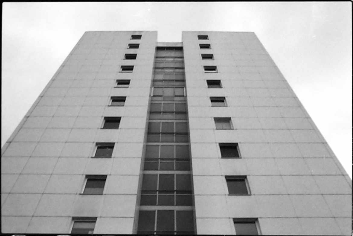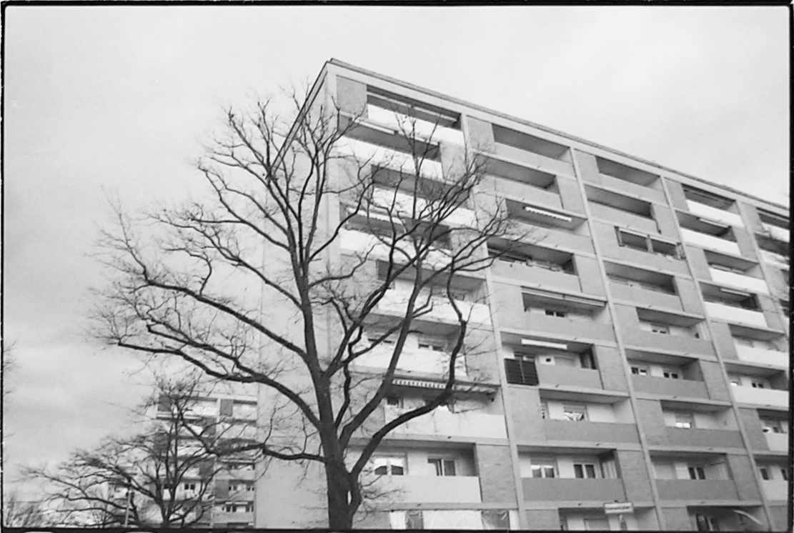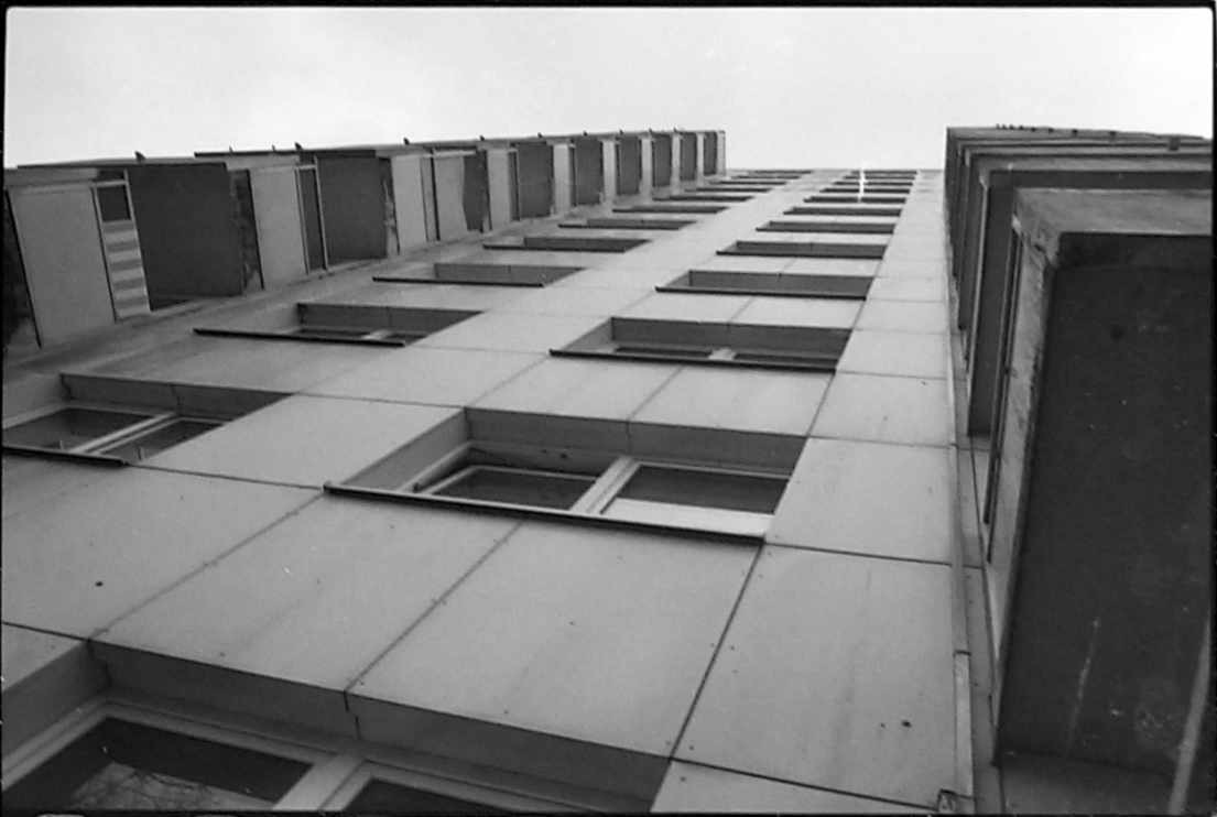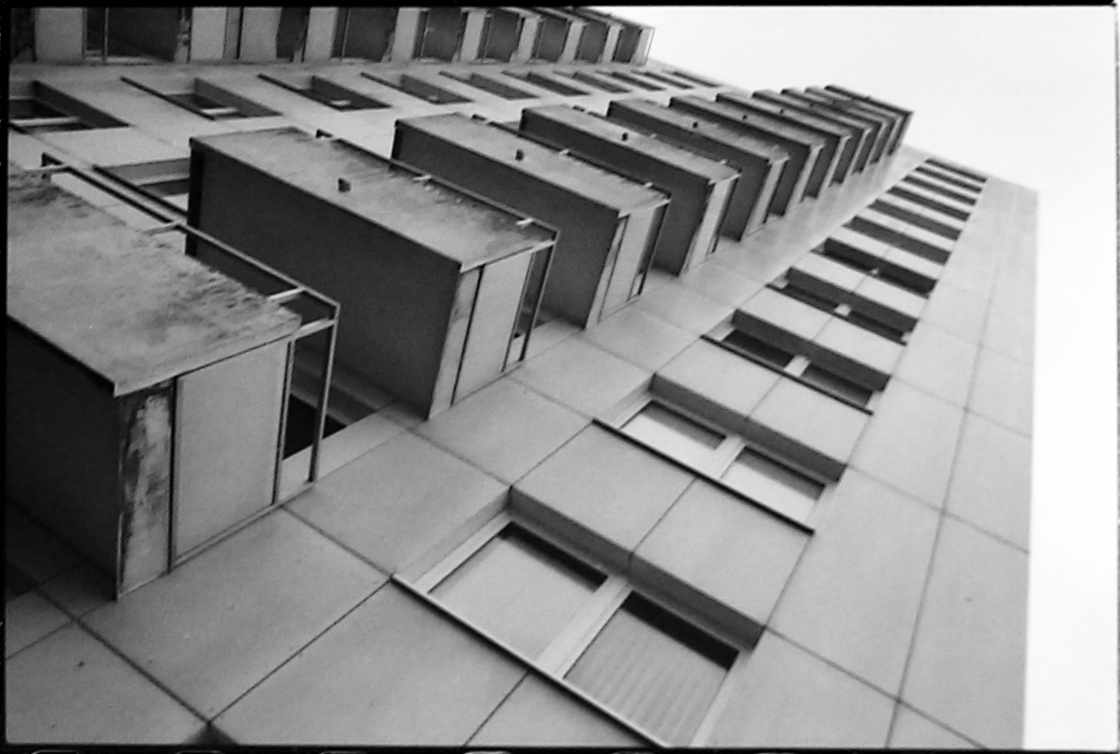 Annäherung Fassaden in Bamberg Ost, Kantstrasse, #18022026, Aufnahmen mit Canon A1, 28 mm, KB, FOMA 400 ASA